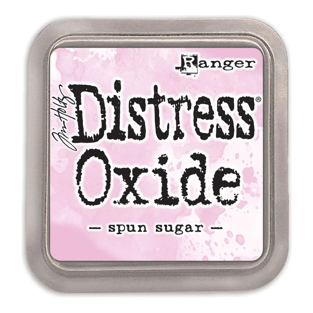 I started my card by working on the background. I used Distress Oxide Inks in Spun Sugar, Picked Raspberry, Dried Marigold, Carved Pumpkin, and Black Soot. Initially, I hadn’t planned on adding purple, but as the pink blended with the black, it created a purple hue, so I decided to embrace it!
